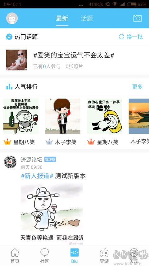 《济源论坛APP》是济源的本地生活服务互动社区。是济源综合性地方生活论坛,致力于帮助生活在快节奏城市里的现代人解决衣、食、住、行、娱乐、情感、教育、职业等问题,同时论坛内包含新闻资讯、民生服务、便民服务。交友互动,娱乐休闲等各大板块,用户可自由选择进入,和同城用户一起交流分享!济源的朋友不要错过,KK下载站推荐大家下载体验!