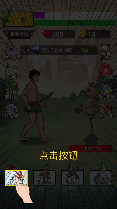 1、首先进入最牛剑客游戏,然后点击屏幕可以不断打击面前的剑靶;