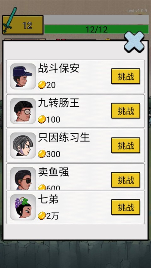 5、选择你要挑战的人物角色,如:战斗保安、九转肠王、只因练习生、卖鱼强、七弟等;