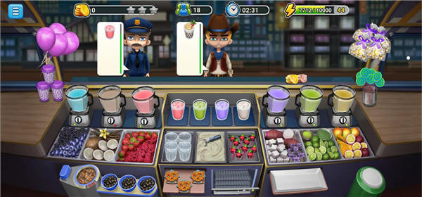 3、建议玩家先准备酸橙(绿)、香芋(紫)、椰子(白)和芒果(黄)各一份,放在左边第二个和右边的三个位置。根据经验,这些材料出现频率较高。
