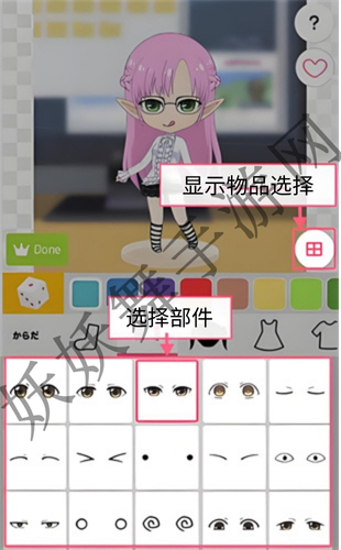 1、选择身体部分后选择物品,可点击“×”按钮移除物品。