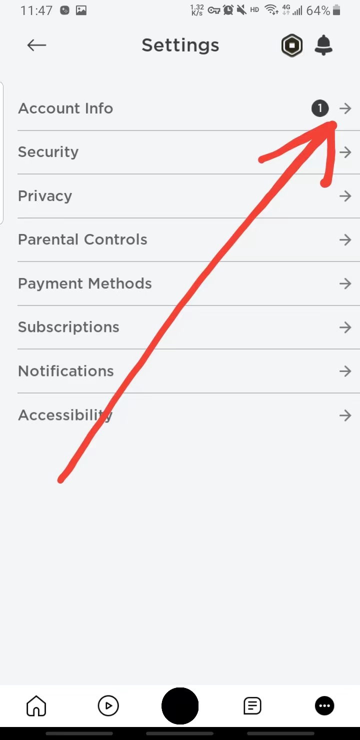 3、点击进入设置界面点击第一个account info(账户信息)右边的箭头;