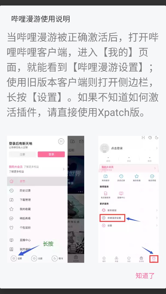 1、打开哔哩哔哩漫游版APP,进去之后会有一段漫游说明。