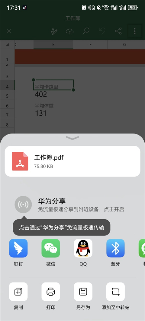 2、点击以PDF格式共享