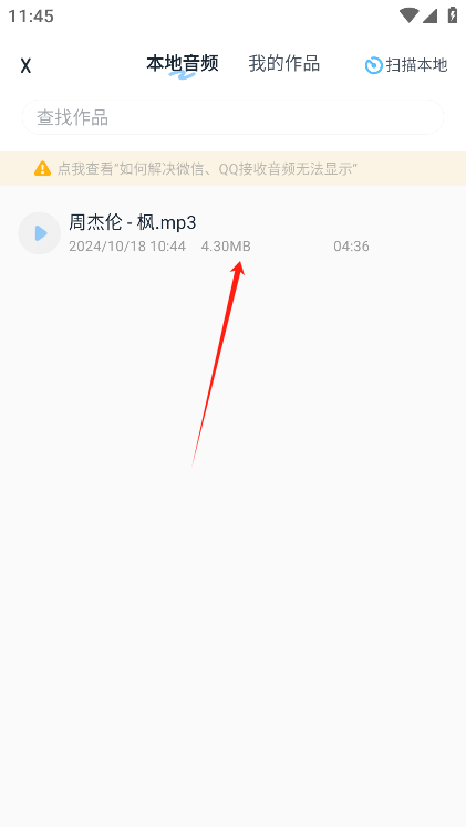 4、点击伴奏提取,会总动扫描本地歌曲,您直接选中即可编辑