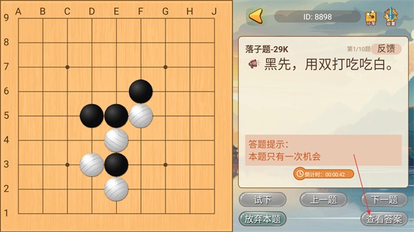 3、在【落子题-29K】答题界面,若遇到困难可点击【查看答案】获取解题思路。
