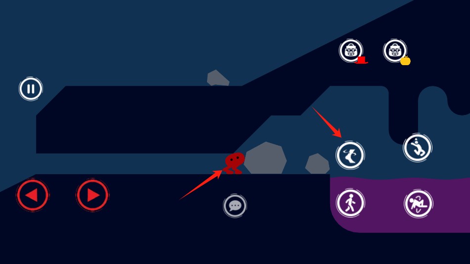 3、移动到达此处时,可点击右边的按钮,把石头踢下去,即可通过此道路。