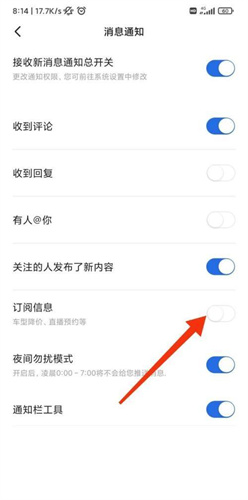 3、在消息通知页面,把【订阅消息】开启即可。