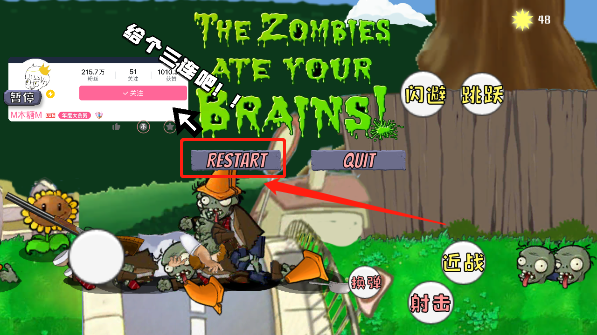 即便是被击败后,也无需担心,点击“restart”即可重新闯关,游戏的存档不会有任何损失