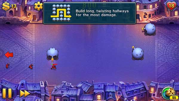 4、玩家需要通过构造长条式的曲折路径,达到增加你的火力密集区域长度的方式来更有效的打击敌人。