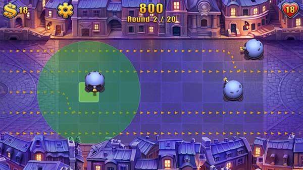 2、敌人只能通过变化的线路逐步前进,而且玩家在周围线路布置的炮塔可以依据其攻击范围有序的持续攻击敌人(没有弹药限制)