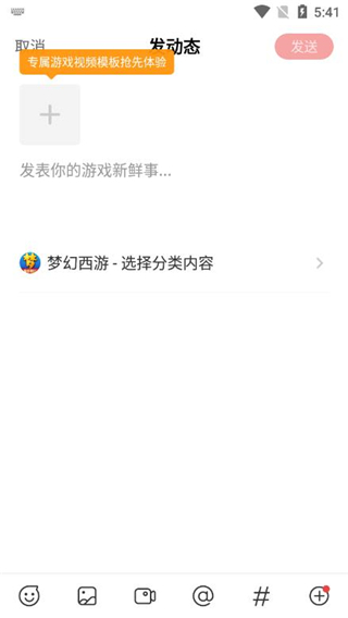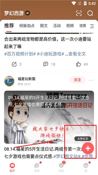 3、怎么发表动态,点击底端的“圈子”选项,切换成自己喜欢的游戏,然后点击“+”按钮。