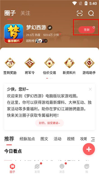 2、点击“签到”选项即可。