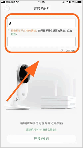 4、将手机二维码对准摄像头,扫描成功后,输入WiFi名称和密码连接即可。