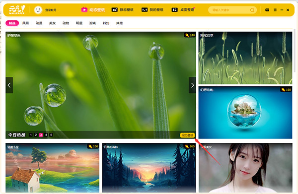 1、进入元气桌面壁纸软件,你可以直接选择直接喜欢的壁纸设置即可。