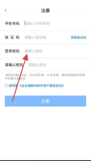 3、点击注册,进入注册界面,输入手机号验证码,设置登录密码等信息,勾选同意协议后,点击注册,完成注册操作。