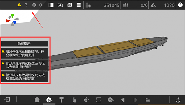 并根据左侧提示完成修缮,这些提示会提示您的战舰存在的问题。