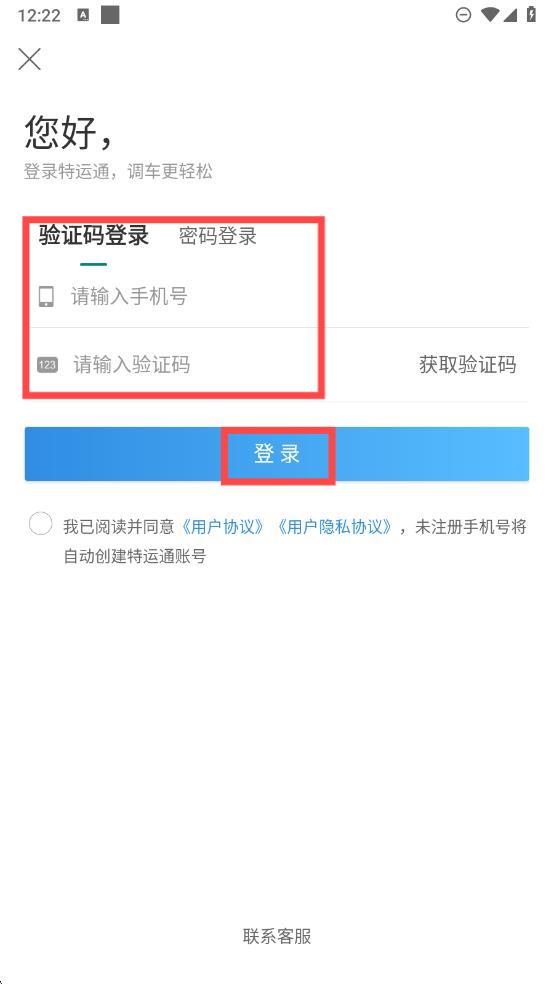 1、进入app需要先进行登录,根据提示选择验证码登录或密码登录即可。