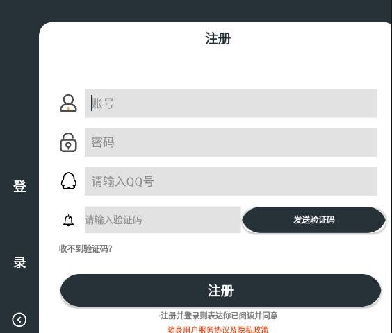 3、输入账号,密码,QQ号,获取验证码就可以注册了。