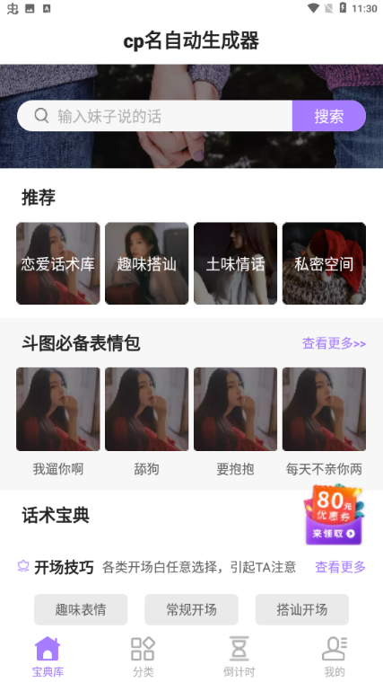 手机打开CP取名器软件输入自己喜欢的名字就可以快速完成操作。cp名字生成器点击上方下载跳转速度超快网页里没有任何广告,所有用户都可以使用没有安卓苹果的限制