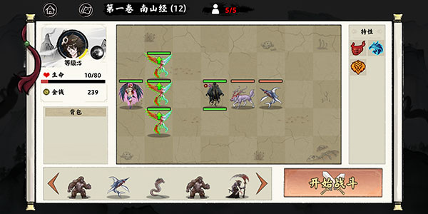 1、选派异兽,布局战场,在每一关卡中与敌方异兽一决高下。