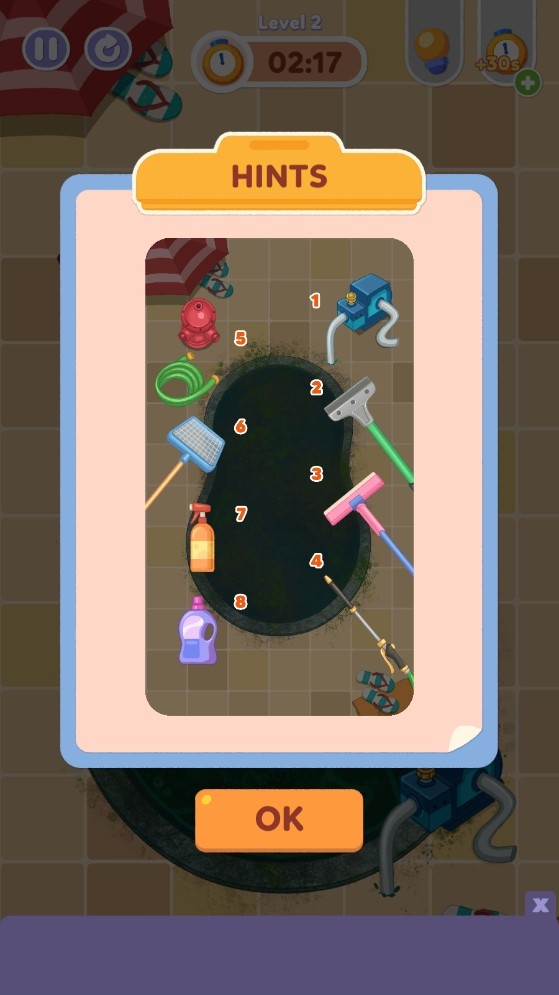 6、下一个同样是你需要将游泳池打扫干净,顺序如下。