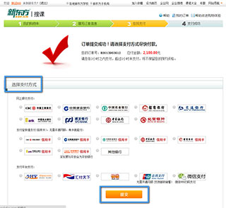 进入网上银行进行支付。订单支付成功后,系统会自动完成报名,同时,您在页面上还将看到听课证信息,请牢记您的听课证号、订单号,以备领取听课证时使用。