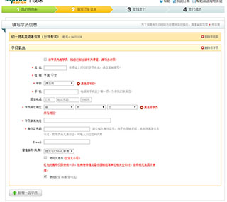如果是老学员,需要在“该学员为老学员”前打勾,填写学员姓名,报名时留的手机号,点击“验证学员信息”。如验证成功,会出现老学员信息,将用户信息填写完整即可。同时可以添加多个学员一起报名。