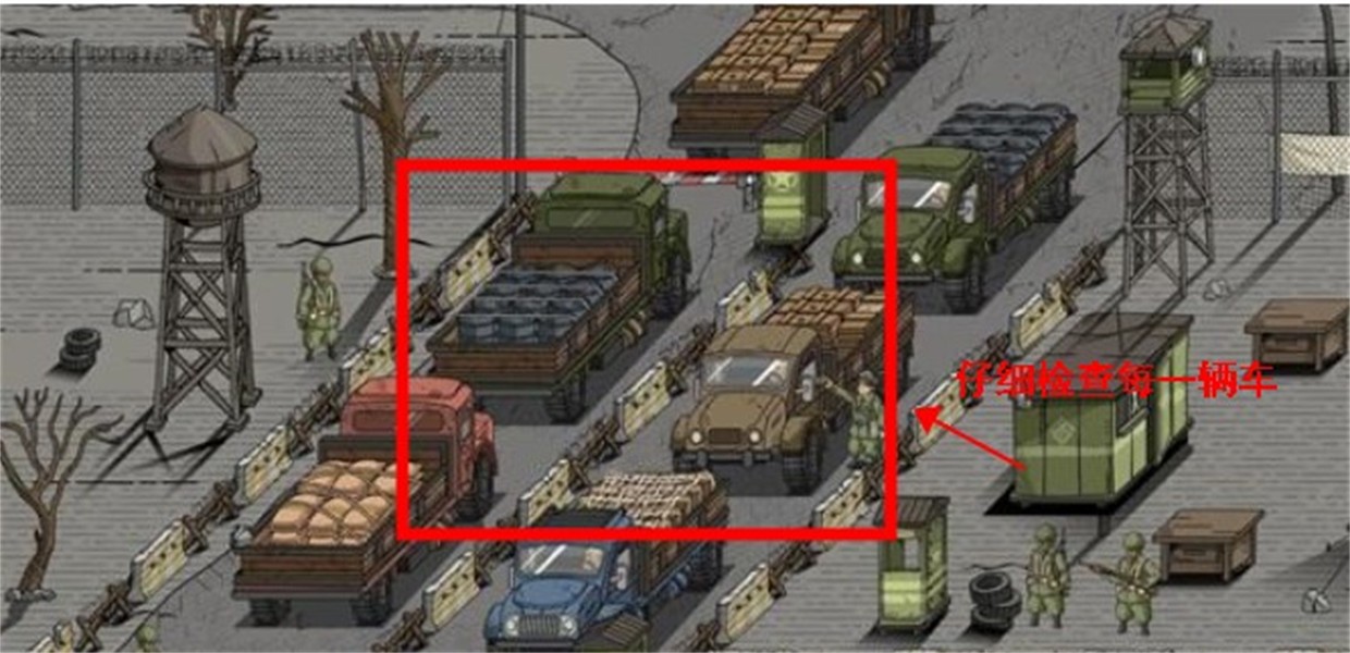 2、游戏中玩家扮演的是一位关卡指挥官,需要对过卡的行人车辆进行细致的检查。
