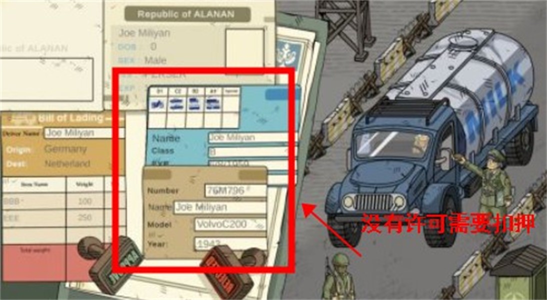 3、玩家可以在如果没有违禁品需要开出过关许可,相反需要对车辆进行扣押。