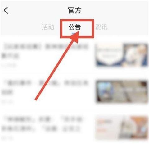 4、在新的页面里,玩家可以点击屏幕上方的【公告】按钮。