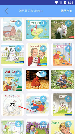 4、可以看到这类型的所有绘本,可播放所有也可随意点击其中一个进行下载,等待下载成功后即可;