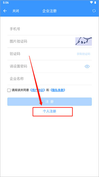 2、如果你是个人注册,则点击“个人注册”,企业注册则选择“企业注册”;