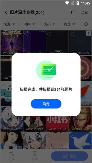 支持微信图片、QQ图片、钉钉照片、手机相册的深度扫描查找导出