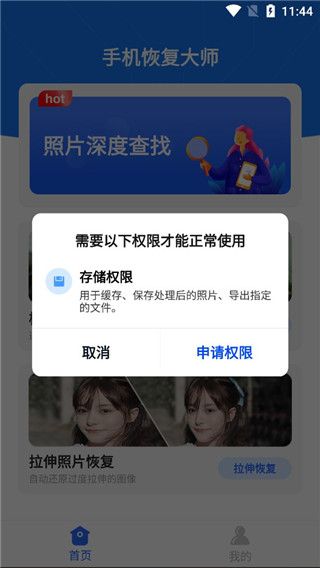 2、用户需要同意软件进行存储和查看搜索导出文件的权限才能够进行使用;