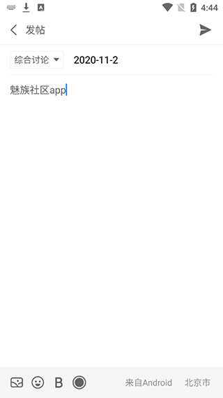 5.点击【发轻贴】,进入帖子编辑页面,输入标题、内容、上传图片即可发送