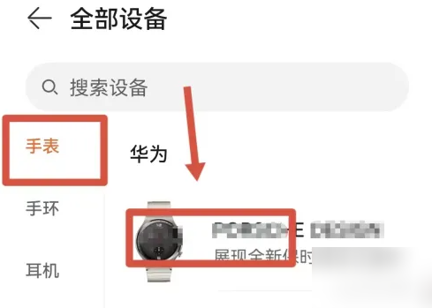 在全部设备页面选择手表选项,选择自己的手表类型。